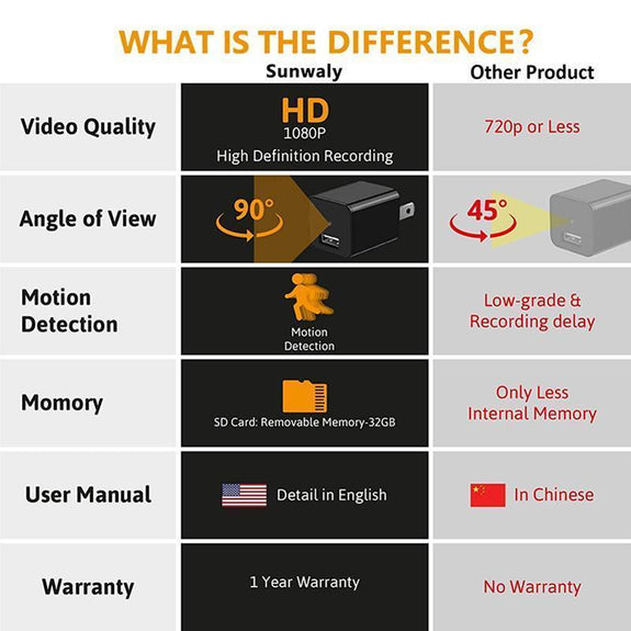 Dual-Purpose USB Charger is a MINI VIDEO CAMERA and CHARGER in ONE USB. It is made of MILITARY-GRADE material for DURABILITY and LONG-LIFE SERVICE. It can RECORD 1080p HD VIDEO with a CRYSTAL-CLEAR AUDIO. It has a NIGHT VISION and INFRARED technology. It has a MOTION DETECTION FEATURE that has an ADJUSTABLE SENSITIVITY SETTINGS. It has 75° ANGLE making you see CLEARLY and FULL.