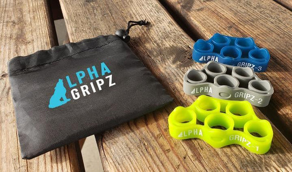 Our therapeutic ALPHA GRIPZ bands come in 3 resistance levels: GREEN (light), GREY (moderate) & BLUE (heavy) to provide you with your ideal training level.