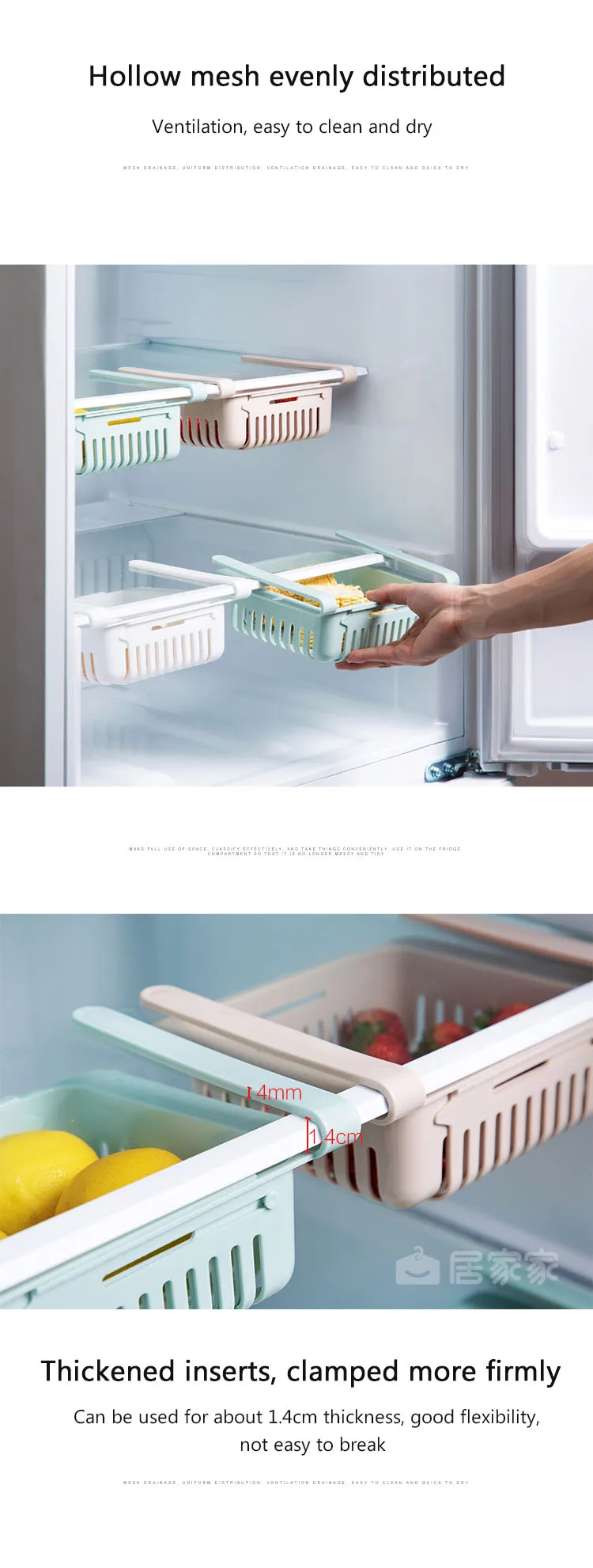 2.They are used in refrigerators, freezers, tables, desks, cabinets, and are ideal for storing and organizing food or handling small items on tables and tables: